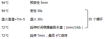 (1) PCR:按照 PCR 试剂说明书(天根 KT211),加入目的 DNA 或者 cDNA、引物、PCR 试剂、ddH2O 等,按照程序进行 PCR 扩增。注意所使用的酶可以在 3’端添加 A。参考体系如下: